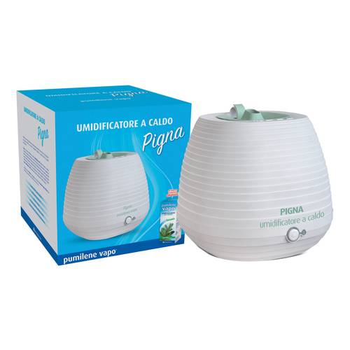 PIGNA UMIDIFICATORE A CALDO pumilene vapo Umidificatore a caldo dal design innovativo. Sistema riscaldante a resistenza. Capacità 2,8 litri per un’autonomia di 7 ore. Vaschetta porta essenze. Spegnimento automatico. Certificazione CE e IMQ. Di facile pulizia contro il calcare, funziona con tutti i tipi di acqua. In omaggio Pumilene Vapo Emulsione a base di oli essenziali di pino mugo, eucalipto e menta che svolgono un azione balsamica naturale e possono essere inseriti nella vaschetta porta essenze che oltre a profumare gradevolmente l'ambiente facilitano la respirazione. Formato Confezione con umidificatore + in omaggio P...